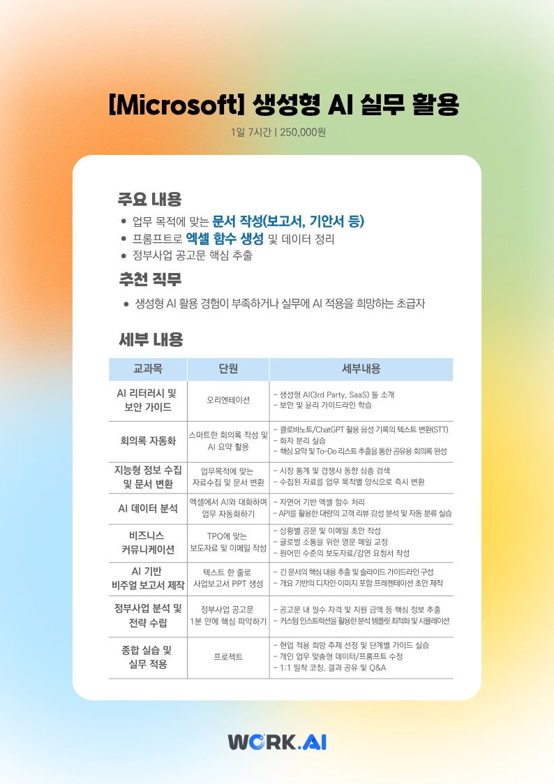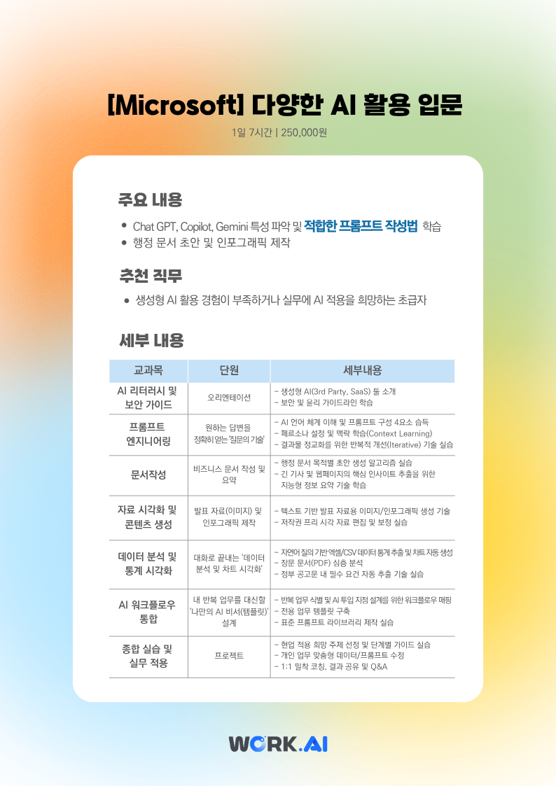 3○[Microsoft] 재직자 AI 교육 안내 (자세한 과정 내용은 첨부파일 확인)